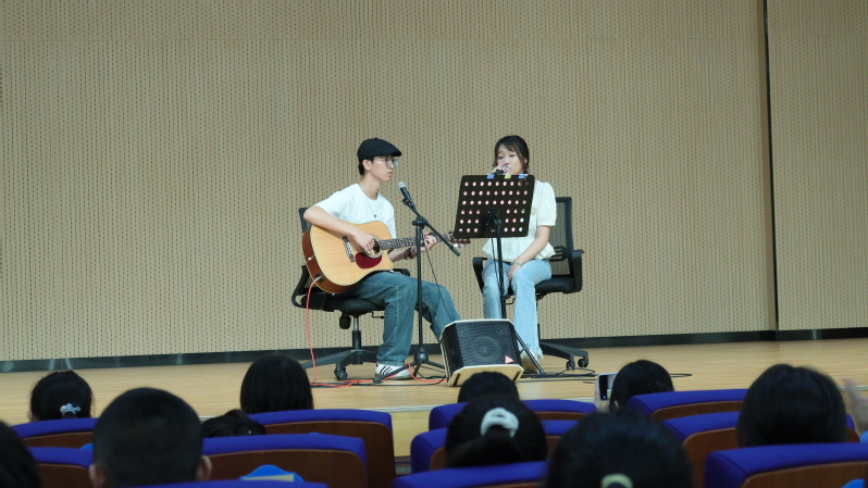 志愿者们在启明学校的舞台上尽情地为同学们展示精心准备的表演。悠扬的歌声温暖着孩子们的心;朗诵灵动,仿佛为孩子们打开梦幻之窗。孩子们专注聆听,脸上洋溢着纯真的笑容,现场充满欢乐与感动。