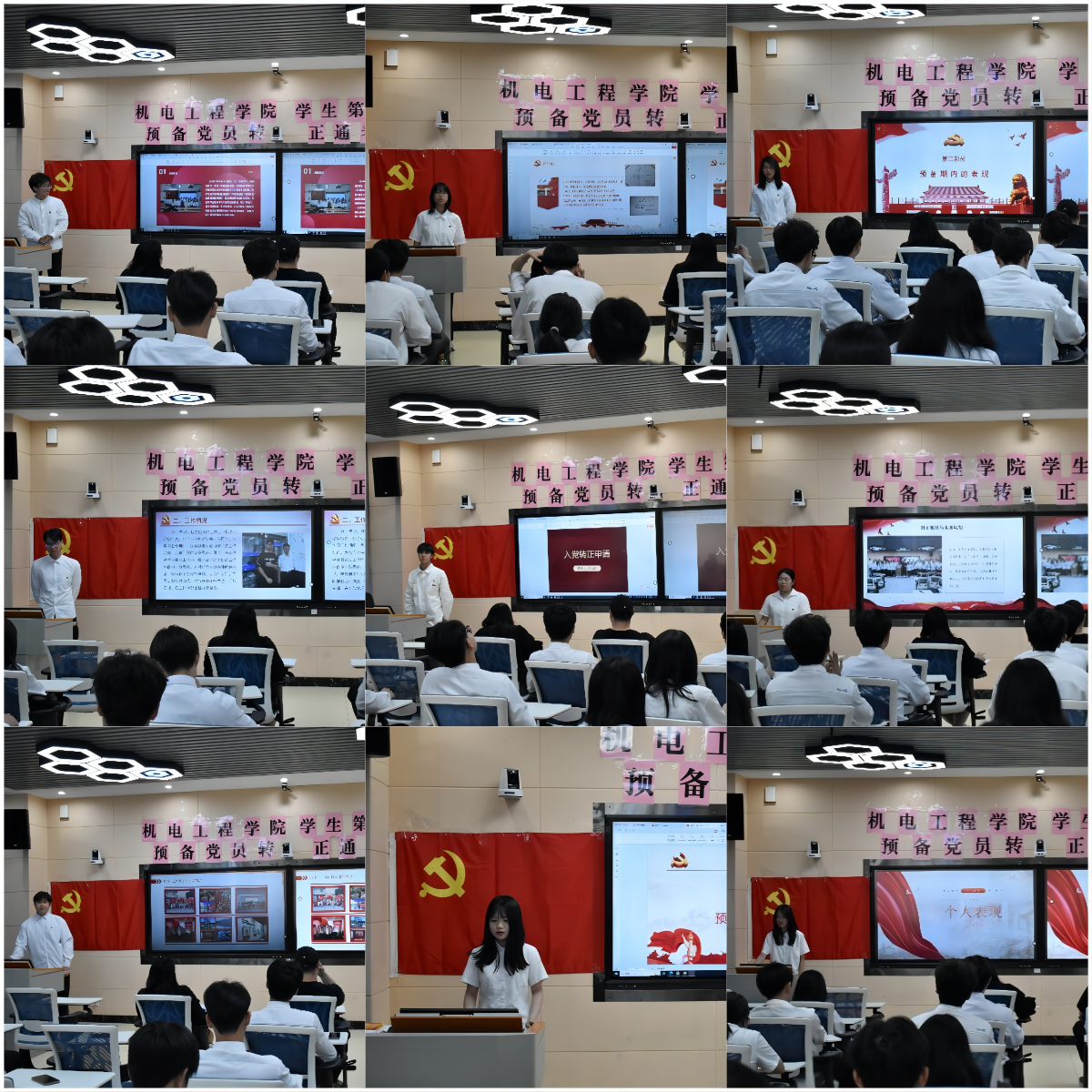2024年6月21日上午11时,机电工程学院学生第二党支部在明德楼一区316召开预备党员转正通表大会,对刘曼纯等9名预备党员的转正申请进行讨论。出席本次会议的有机电工程学院学生第二党支部书记吴文婷同志、纪检委员王锐斌同志、组织委员邵盼盼同志、教师党员刘洋曦文同志以及全体学生党员。