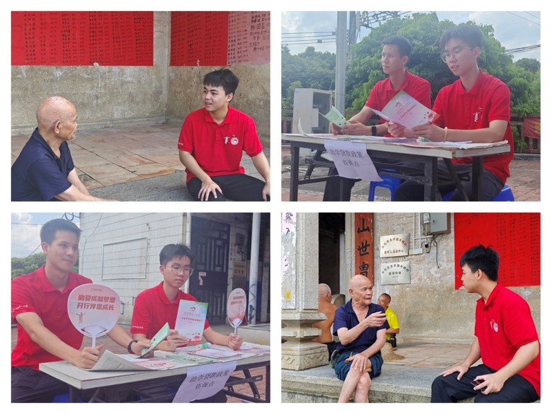为全面贯彻党的二十大精神,完善覆盖全学段学生资助体系。我省不断健全家庭经济困难学生资助政策体系,实现了从学前教育到研究生教育学生资助全覆盖,从制度上保障了“不让一个学生因家庭经济困难而失学”。为响应这一号召,进一步加强资助政策宣传力度,让更多人全面了解“学生资助政策”,7月9日,在李梓鸿队长的带领下,“壹点爱,心连心”服务队来到木棉村进行了“学生资助政策”和“生源地信用助学贷款”全方位、系统化的宣传。