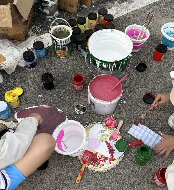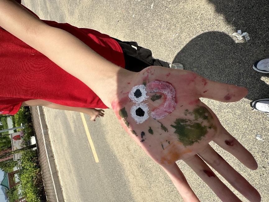 在紧张而有序的墙绘工作中,队员们也不忘寻找乐趣。他们利用休息间隙,发挥无限创意,在手上进行绘画创作,将五彩斑斓的颜色和独特的图案绘制在手掌和手指上。这些手绘作品不仅展现了队员们的艺术才华,更为他们的工作增添了几分趣味和活力。这些轻松的时刻不仅缓解了大家的疲劳,更增强了团队的凝聚力和向心力。