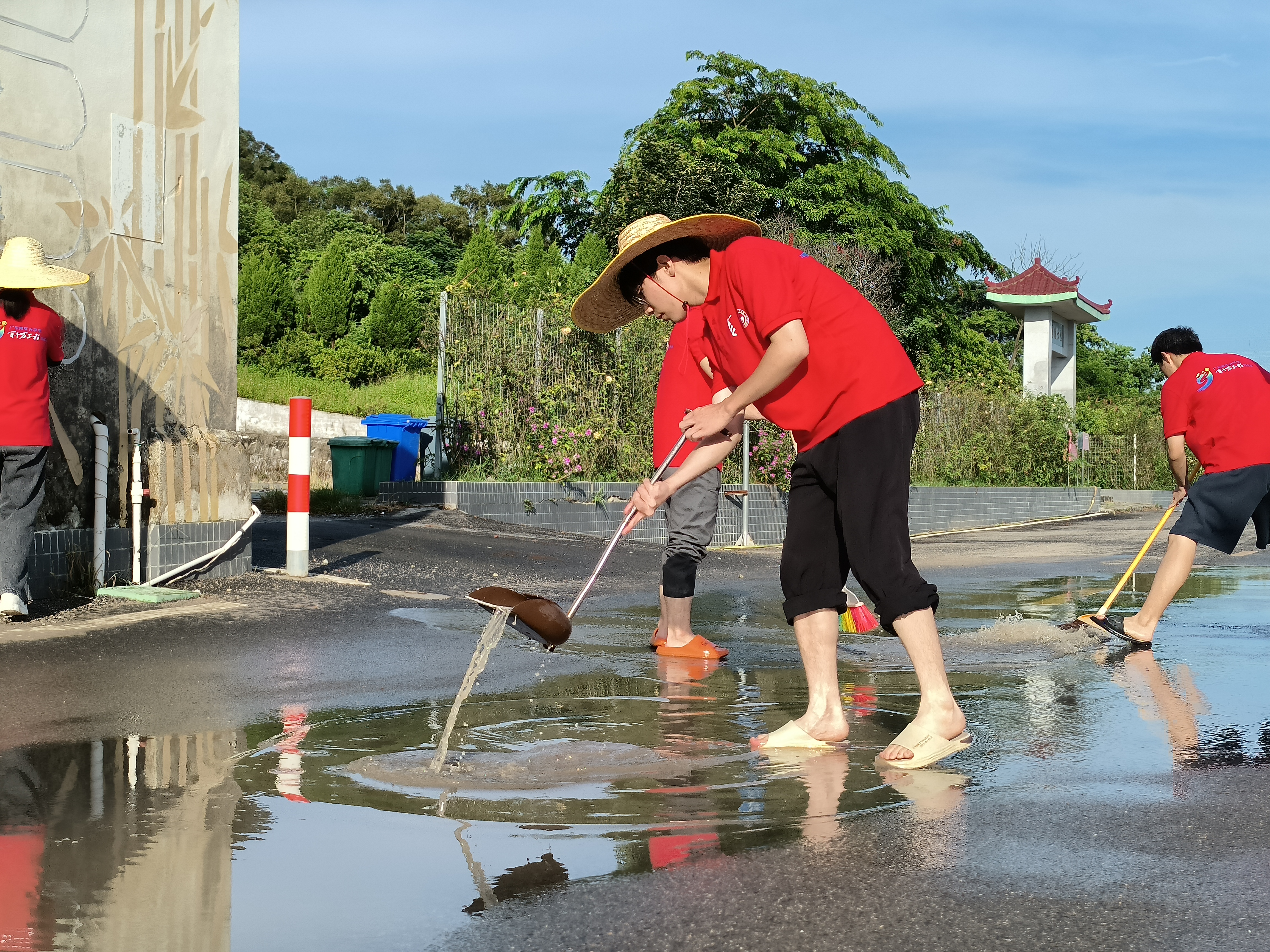 清晨,红星突击队的队员们身着统一服装,携带清扫工具来到了南溪村内积水严重的路段。他们分工明确,迅速行动,有的负责疏通排水口,有的则使用扫帚、铲子等工具清理路面淤泥和垃圾。在队员们的努力下,积水逐渐退去,路面恢复了往日的干净与整洁,为村民的出行提供了便利。随后,红星突击队继续清理附近厂区内堆积的建筑杂物。这些杂物不仅影响了厂区的整体美观,还可能成为安全隐患。为了改变这一现状,队员们再次分工协作,对厂区内的建筑垃圾进行了全面的清理。他们或徒手搬运重物,或利用扫把扫斗等工具清扫建筑碎片,在保证安全的前提下尽自己所能为绿美广东的生态建设尽绵薄之力。