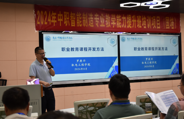 机电工程学院临时负责人罗庚兴教授从三教改革;课程的开发模式;职业教育课程开发案例;如何进行课程思政以下四个维度作“职业教育课程开发方法”的主题报告。