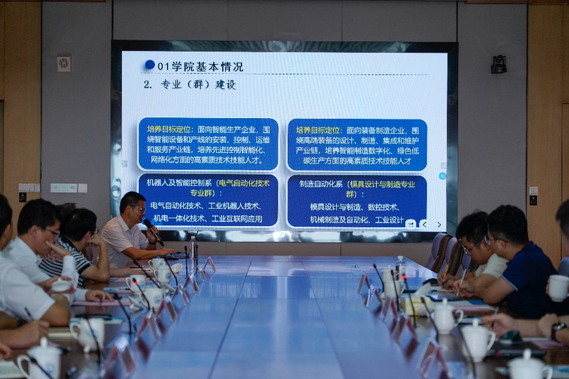 签约仪式结束后,校企领导、机电学院相关负责人、系主任和骨干教师针对专业建设、人才培养、产教融合方面做了深入交流研讨。双方认为,本次校企合作将有助于进一步聚焦落实广东省“1310”部署,服务粤港澳大湾区高端装备制造产业和“制造业当家”等重大战略,构建“学院+龙头企业”的“科技创新、科技服务、校企合作”新模式,探索特色产业学院“产教融合、科教融汇”协同育人新机制,促进教育链、人才链与产业链、创新链有机衔接。双方还研究了校企联合建设先进制造产业学院事宜,在广东工贸的机电工程学院优选专业,打造具有汇川特色的产业学院。双方友好协商,就产业学院建设、产业联盟组建、人才培养、“双师双能”型师资培养、职业资格认证中心建设、就业创业、赛事举办、科研与技术服务平台建设、国际化教育平台建设等方面达成合作意向。