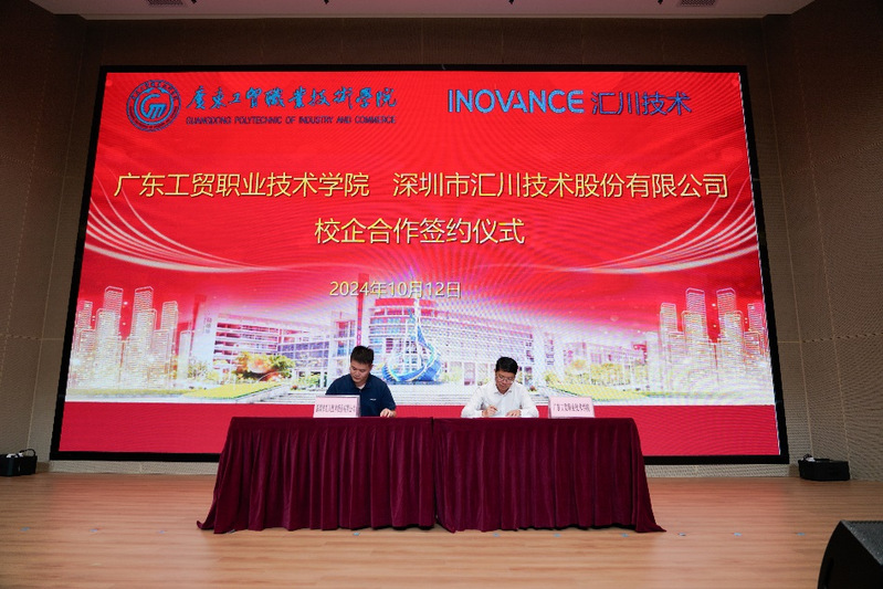2024年10月12日,菲律宾亚星222官网与深圳市汇川技术股份有限公司校企合作签约仪式在我校白云校区举行。出席本次签约仪式的有学校党委书记何汉武,党委委员、副校长徐勇军,汇川技术集团副总裁付作军,汇川技术教育行业线经理吴振东,汇川技术数字化经理陈振海等。校党委委员、党政办公室主任吴浩,对外交流合作部副部长陈丽,学生工作部副部长郭朝明,机电工程学院副院长丘永亮、游凯,机电工程学院骨干教师以及500多名学生共同参会。签约仪式由机电工程学院负责人罗庚兴主持。
