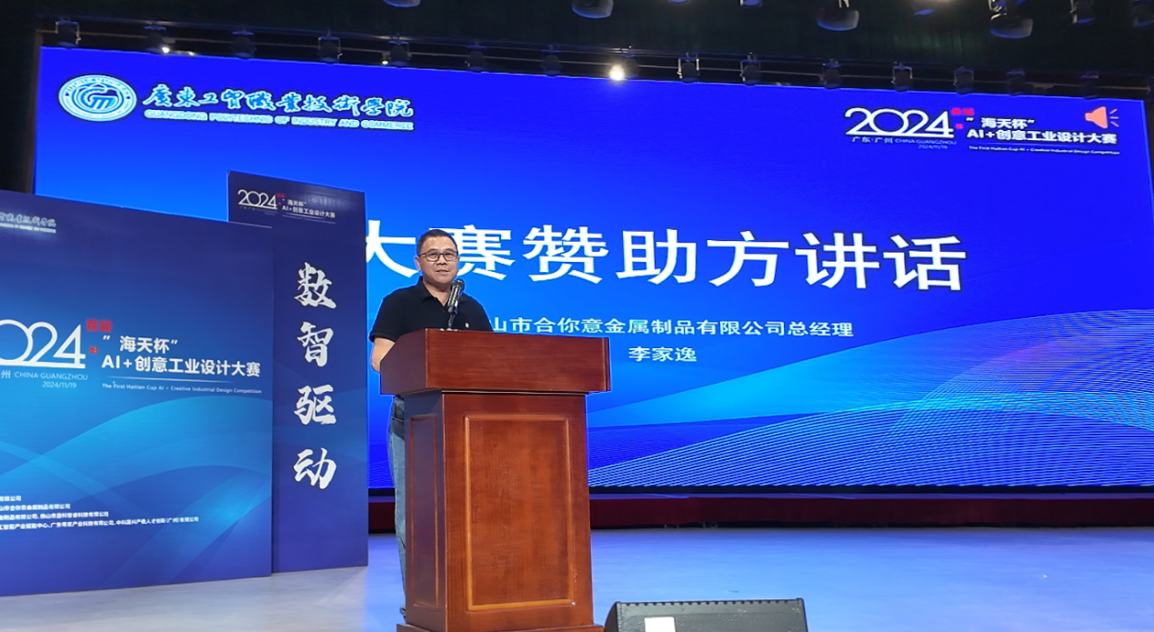佛山市合你意金属制品有限公司总经理李家逸致辞,分享了对本次竞赛主题设计的看法,为设计作品落地生产指明方向。