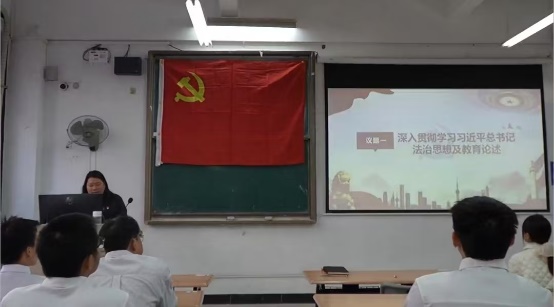 会议伊始,吴文婷同志带领全体师生党员深入学习贯彻习近平法治思想及教育论述。习近平总书记指出,“坚定不移走中国特色社会主义法治道路,增强宪法自觉,加强宪法实施,履行宪法使命。”作为新时代党员,要坚定宪法自信、弘扬宪法精神,做宪法的忠实崇尚者、自觉遵守者和坚定捍卫者。要牢牢把握精髓要义,将其融入到工作和生活中去,不断提高思想认识和行动能力,为推进全面依法治国和建设教育强国贡献自己的力量。