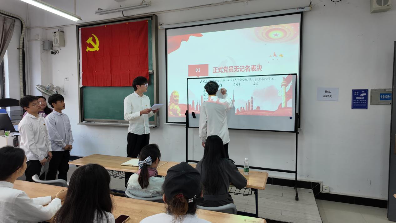 为加强党组织建设,发展壮大党员队伍,严格规范党员的发展、教育和管理,不断加强党组织的新活力,筑堡垒争先锋,增强党支部凝聚力和战斗力。2024年12月30日下午,机电工程学院学生第二党支部在明德楼一区418召开预备党员转正通表大会,出席本次会议的有机电工程学院学生第二党支部书记吴文婷同志、组织委员邵盼盼同志、教师党员刘洋曦文同志以及全体学生党员。本次大会由吴文婷同志主持。
