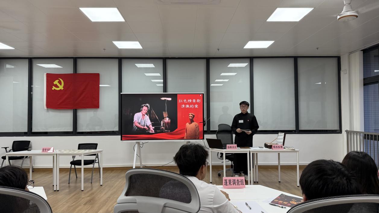 在情景演绎之后,支部书记吴文婷同志以“赓续五四薪火 筑牢作风之基——从李白烈士精神中解码建党初心与时代担当”为题进行主题分享。在数字化浪潮中开启红色记忆新维度,以云端漫游的创新形式,带领大家回顾了这位“空中桥梁”的通信英雄三次被捕但仍坚守电波阵地的光辉岁月。她讲到,在新时代的征程上,作为新时代大学生应以李白烈士为镜,汲取其英勇无畏、忠诚担当的精神力量,将个人理想融入国家发展大局,把作风建设内化于心、外化于行,在追求卓越中奋发图强,在时代洪流中勇挑重担,让五四精神与伟大建党精神在新时代交相辉映,绽放青春最耀眼的光芒。