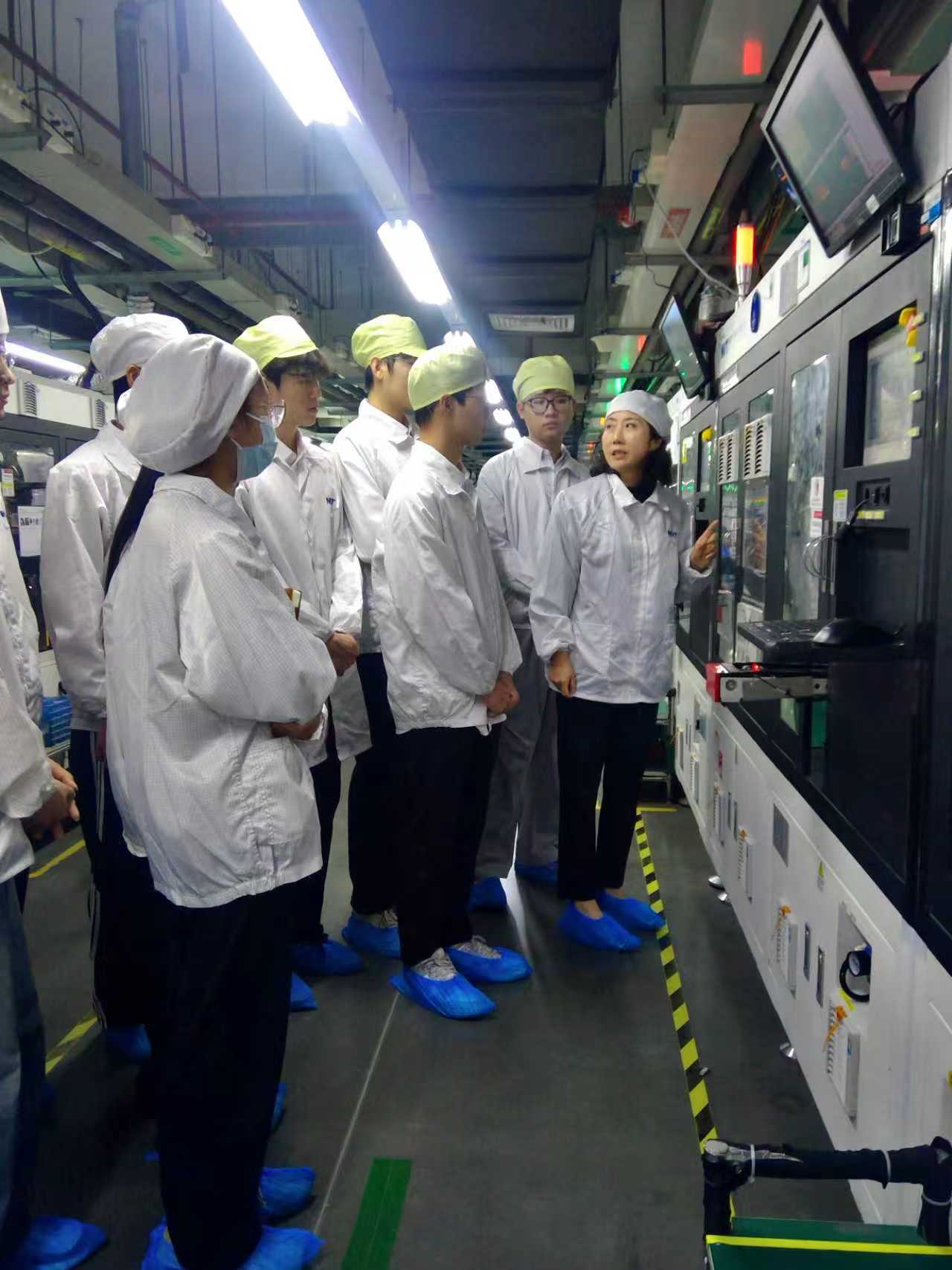 活动伊始,师生在企业工作人员的引导下参观了企业展示大厅,集中观看企业宣传片与产品展示,详细了解新能德科技的发展历程、技术优势与行业地位。作为全球领先的锂电池服务商,公司聚焦消费锂电与动力锂电领域,以先进研发与智能制造能力服务于多家知名企业,其在绿色生产与智能化方面的成果给同学们留下深刻印象。