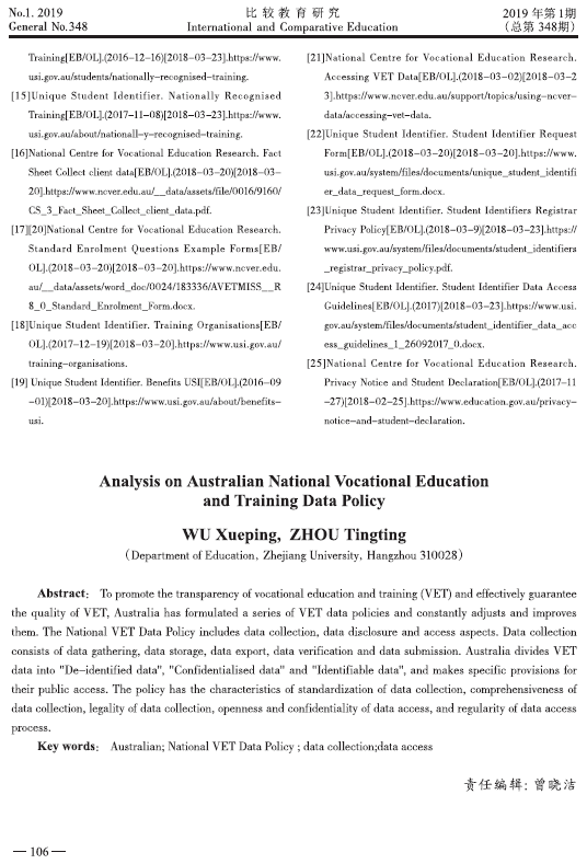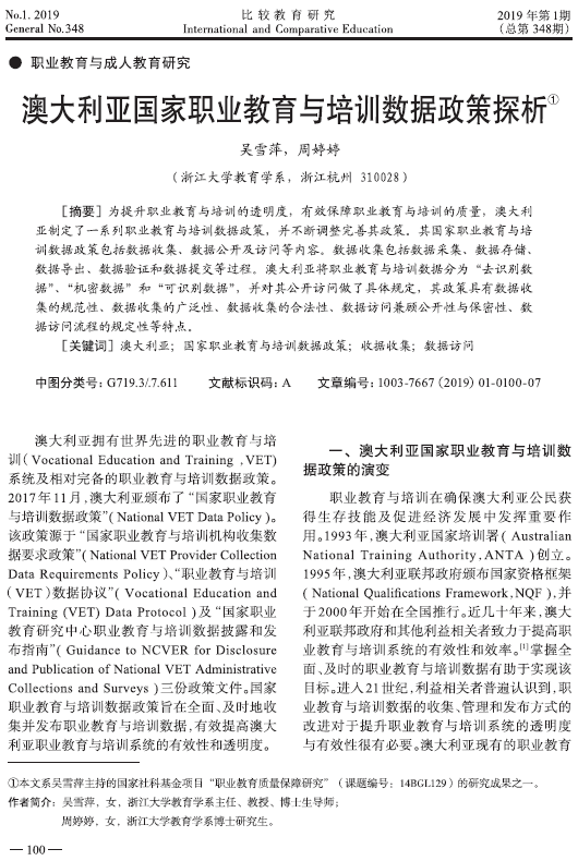 吴雪萍等:澳大利亚国家职业教育与培训数据政策探析