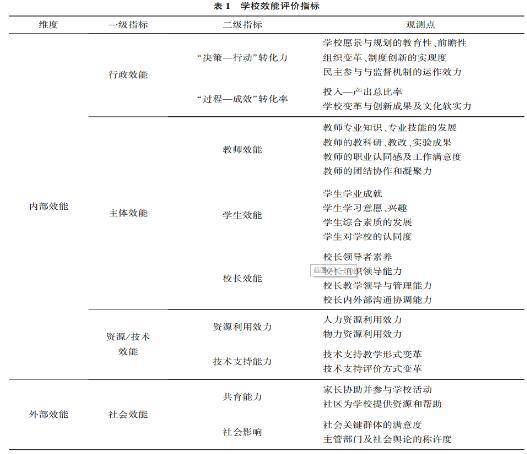 (一)对学校现代化之效能标准及其评价指标体系的构想