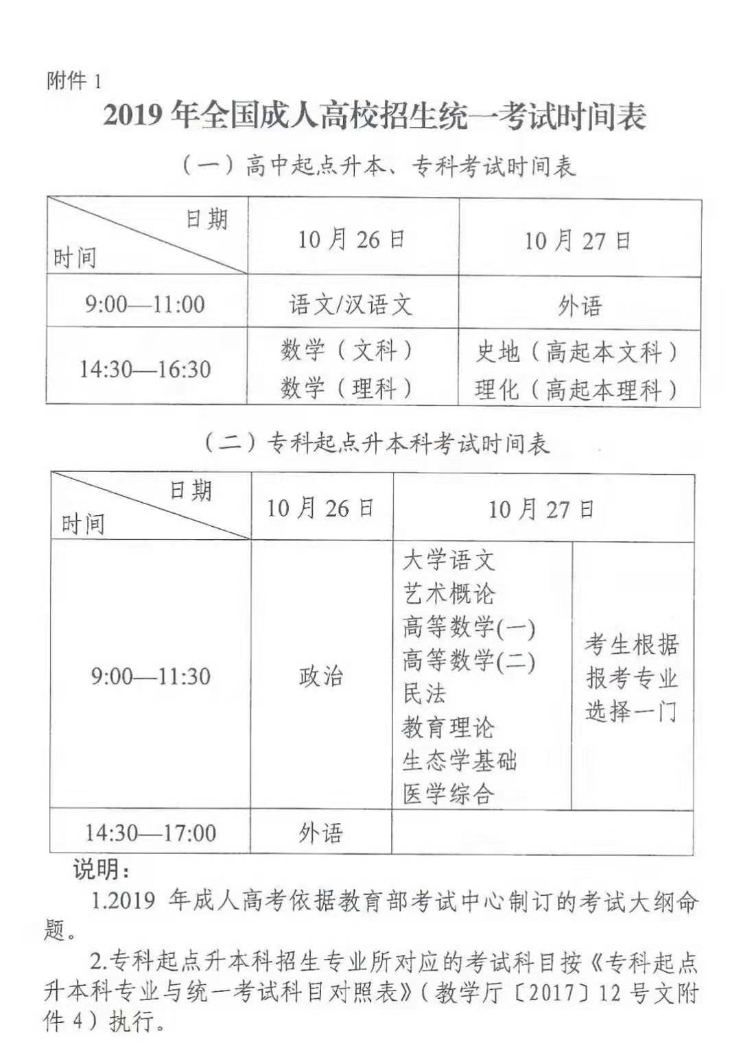 2019年全国成人高校招生统一考试将于1026-27日进行,网上报名于911日开始!