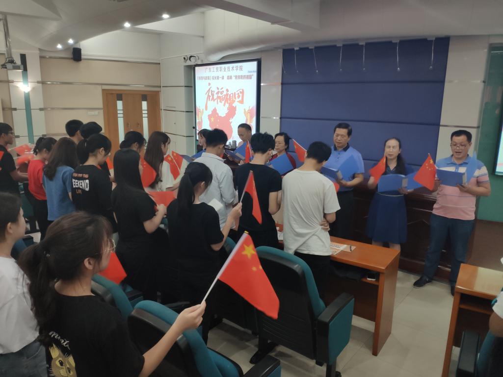 讲课接近尾声,聆听讲座的老师和学生在何校长的带领下开展了“思政课堂唱响《我和我的祖国》”的歌唱活动,饱满深情高歌告白祖国,现场气氛热烈有序。