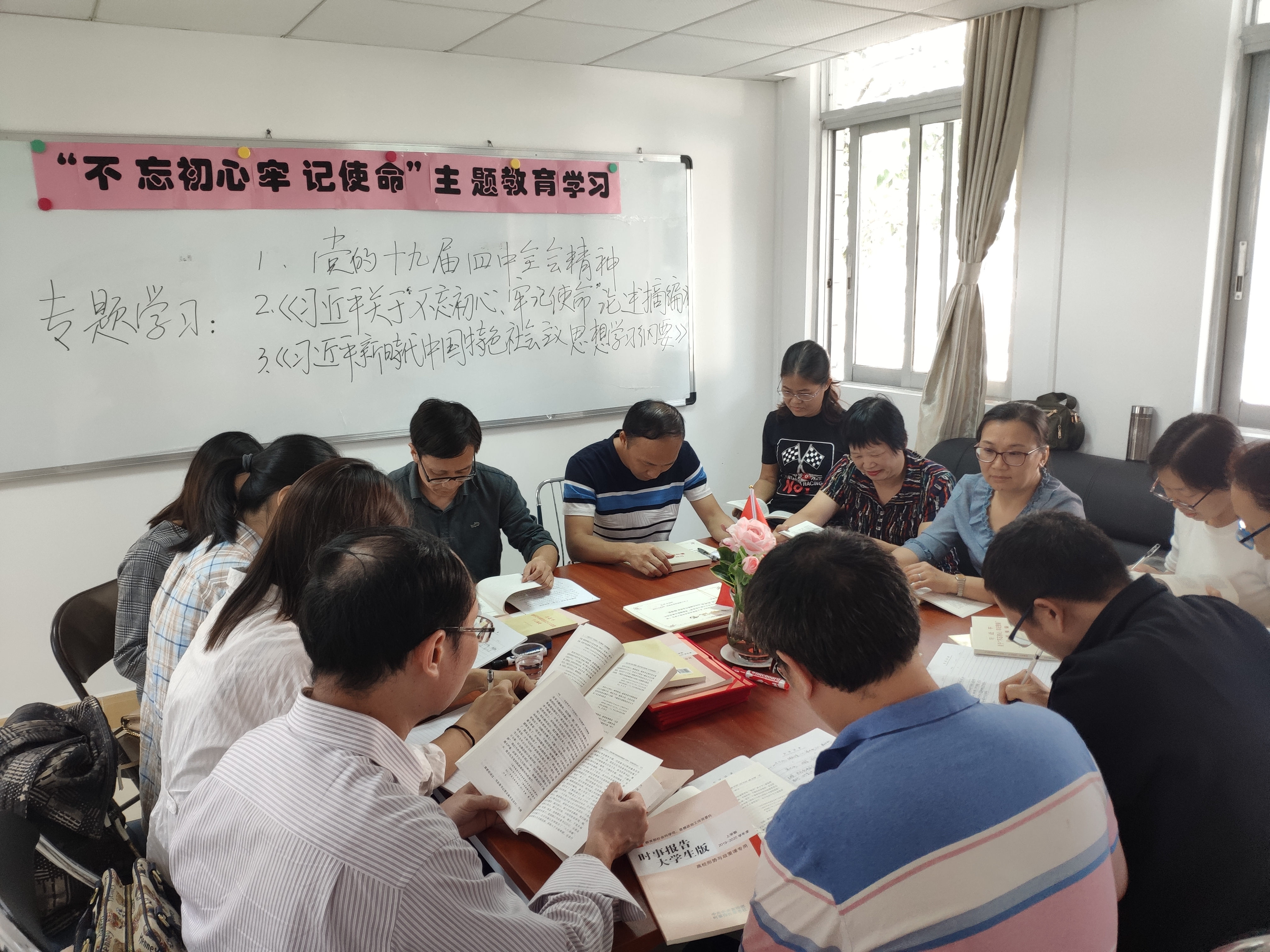 会议分为三个阶段进行。在第一阶段,大家集体学习了党的十九届四中全会精神 、《习近平关于“不忘初心、牢记使命” 论述摘编》 和《习近平新时代中国特色社会主义思想学习纲要》,并结合自己的工作实际畅谈了自己的学习体会,纷纷表示要认真学习领会党的十九届四中全会精神,把会议精神尽快融入到自己的教学工作中去。
