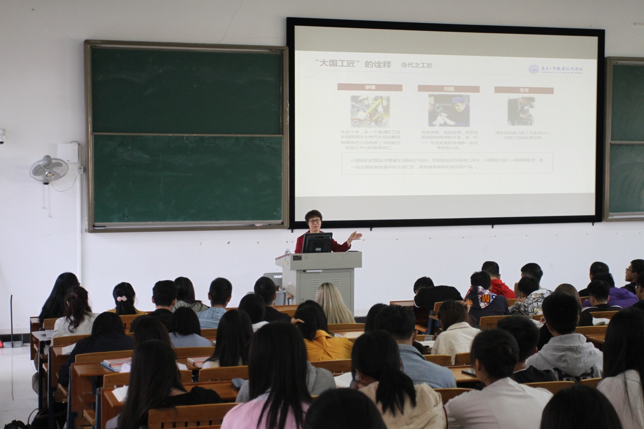 赵副校长结合社会主义核心价值观与工匠精神的关系进行深度剖析。认为无论工匠精神所制造的产品,还是它所体现的职业道德,乃至背后人的素质,都与一个民族的尊严、生存与发展有着密不可分的关系。工匠精神所体现的中国人的知识智慧和理性思辨,体现的工匠们的敬业精神,都与社会主义核心价值观一脉相承,工匠精神是社会主义核心价值观的具体实践。中国特色社会主义进入新时代,我国正从“中国制造”向“中国创造”迈进,行走在实现伟大中国梦的道路上,这些都要求国民具有工匠精神,敢于承担时代赋予的使命。