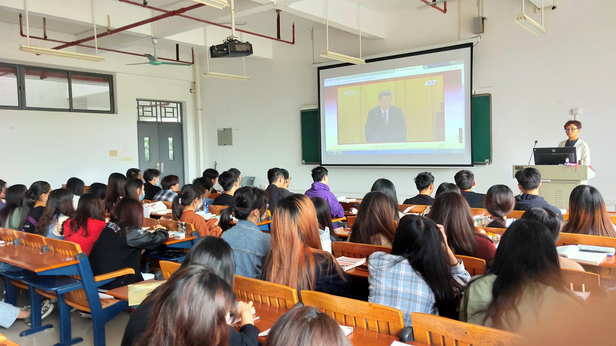 第三,坚持把学习教育活动与当前国家政治生活的重大事件相联系,进一步深化学习教育目的,引导和激发师生爱党爱国爱社会主义的热忱。10月14日,马克思主义学院组织师生收看了深圳经济特区建立40周年庆祝大会直播,感受特区发展速度,了解改革开放历史。10月23日,马克思主义学院组织师生收看了纪念中国人民志愿军抗美援朝出国作战70周年大会直播,聆听习近平总书记重要讲话,深刻领会抗美援朝精神的历史意义和时代价值,坚定了广大师生为决胜全面建成小康社会、实现中华民族伟大复兴而不懈努力的决心。