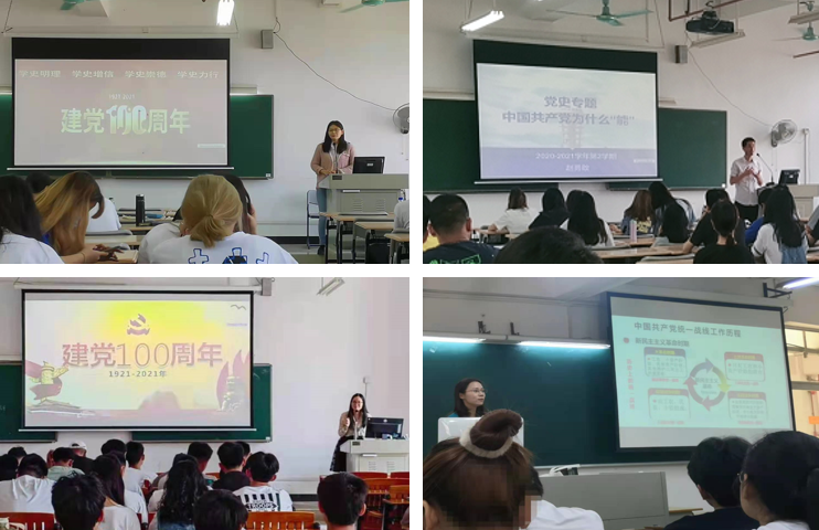 为深入学习贯彻习近平总书记在党史学习教育动员大会上的重要讲话精神,马克思主义学院充分发挥党史学习教育的主力军作用,从3月中下旬开始组织全体思政课教师利用课堂教育主阵地对我校天河、白云和荔湾校区的学生进行了党史专题宣讲,引导学生学史明理、学史增信、学史崇德、学史力行。