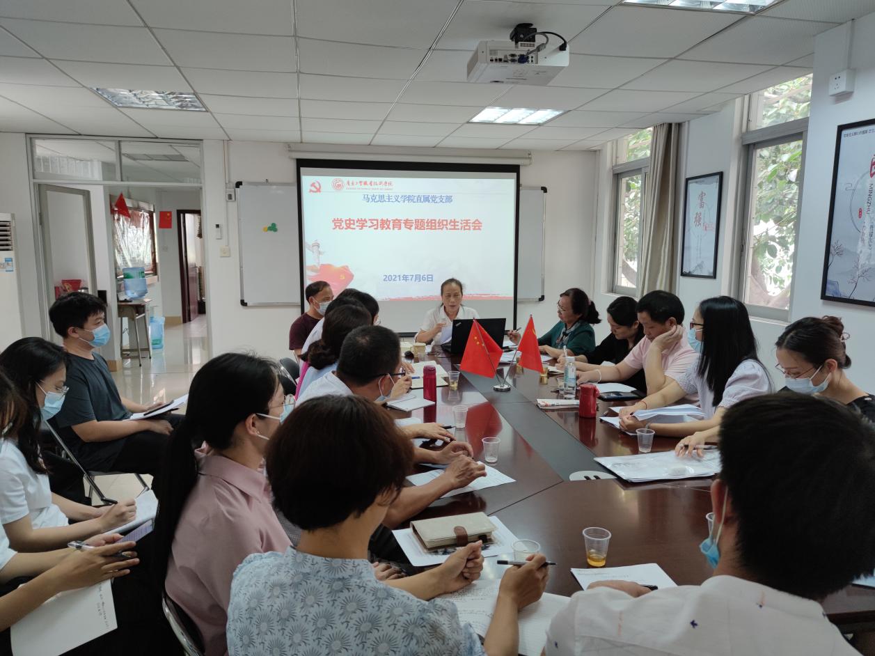 为贯彻落实《中共菲律宾亚星222官网委员会党史学习教育专题组织生活会方案》的通知要求,有效推动党史学习教育深入开展,7月6日下午,马克思主义学院直属党支部召开了党史学习教育专题组织生活会。会议由党支部书记李瑞清主持,全体党员教师参加。