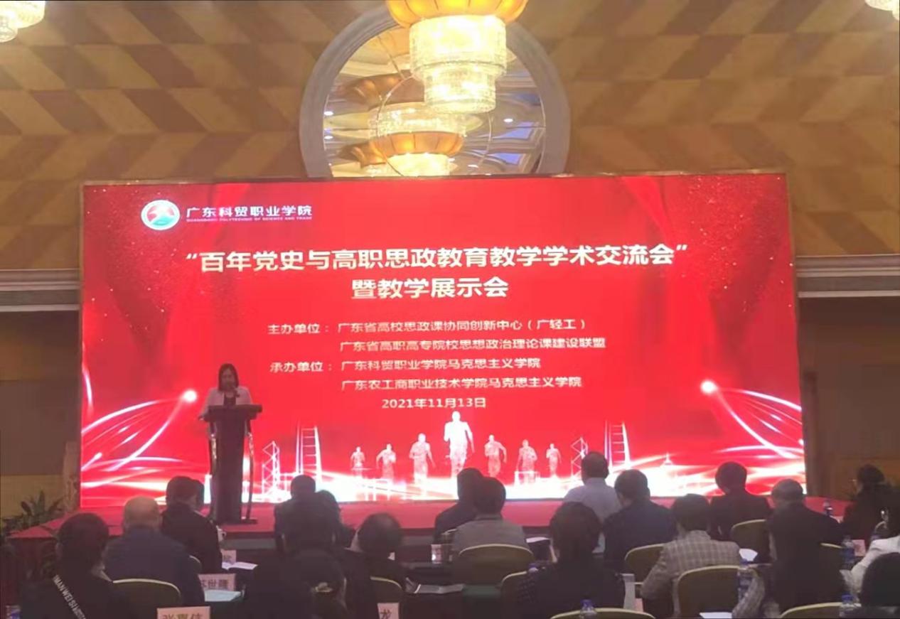 为贯彻落实习近平总书记关于党史学习教育及在庆祝中国共产党成立 100周年大会上的重要讲话精神,11月13日,由广东省高校思政课区域协同创新中心举办“百年党史与高职思政教育教学”学术交流会暨教学展示会在广东科贸职业学院举行。我校马克思主义学院常务副院长李瑞清教授、贾云飞副教授、梁晓彬老师参加了会议。