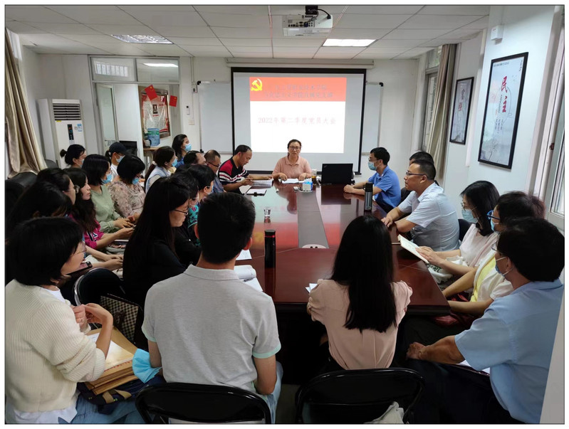 会议第一议题:2022年第二季度党员思想汇报。首先由宁晓菊传达有关召开季度党员大会的要求,并对近期的总体安排和重点任务做了部署。之后教师党员代表张薇薇、张夏青、方瑜聪、武文肖、李静、张倩倩等分别做第二季度党员思想汇报。从思想汇报中可看出,教师党员们非常注重政治理论学习,通过会议集中学和平时自学相结合,在思想上政治上行动上跟上党中央要求,将防疫工作与教学研究工作紧密结合。