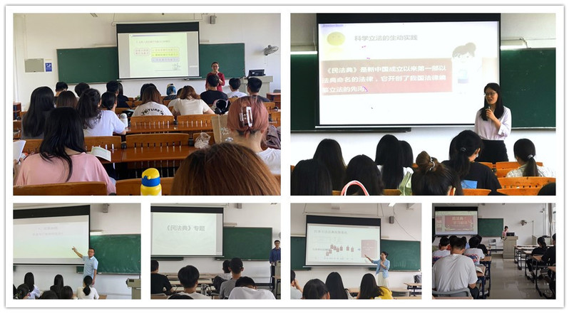 根据广东省教育厅转发的《中共广东省委宣传部广东省司法厅广东省农业厅广东省普法办公室关于开展2022年“美好生活·民法典相伴”主题宣传活动的通知》(粤司办【2022】123号),马克思主义学院按照学校党委的部署,积极行动,结合思政课教学安排,在我校学生中组织开展多项民法典主题宣传活动。