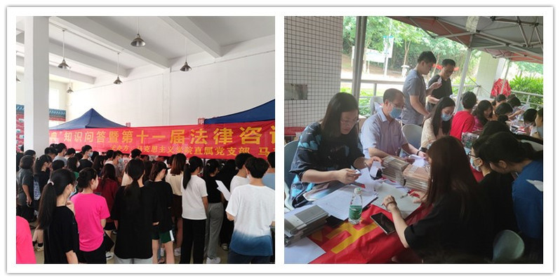 为深入学习贯彻落实习近平总书记关于加强民法典宣传的重要指示精神及党中央、广东省关于深入学习宣传民法典的相关要求,更为了深入学习宣传贯彻习近平法治思想,广泛开展民法典普法工作,马克思主义学院于第15、16周分别在白云校区与天河校区开展“美好人生·民法典相伴”为主题的知识问答暨第十一届法律咨询活动,引导我校大学生深刻认识到民法典既是保护自身权益的法典,也是必须遵循的行为规范,着力培养大学生依法办事、遇事找法、解决问题用法、化解矛盾靠法的法治意识,以实际行动迎接党的二十大胜利召开。