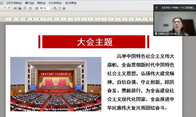 为深入学习领会党的二十大精神,1122日,马克思主义学院直属党支部开展“学习贯彻党的二十大精神”专题党课活动,此次党课以腾讯会议形式展开,马院全体教师参加会议。