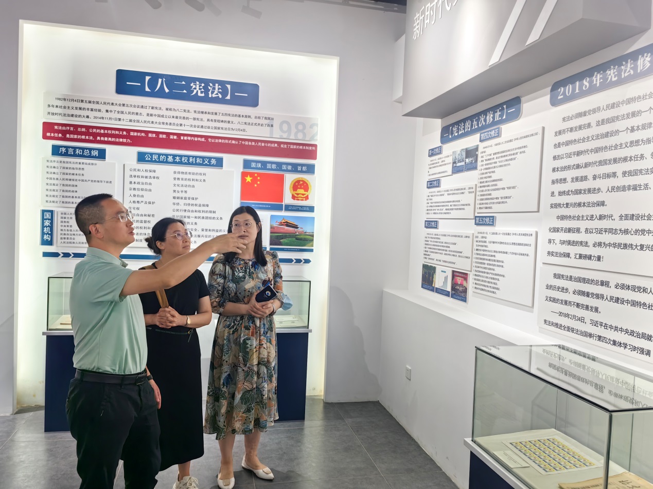 从化区依法治区办副主任、区司法局党组成员、副局长梁飞,区司法局王浩科长等对宁晓菊一行表示了热烈地欢迎。梁飞详细介绍了西塘的宪法馆、家风馆和村史馆的建设和发展情况,他特别提到:西塘宪法教育展览馆是我国第一家把宪法教育与特色乡村建设紧密结合在一起的展览馆,是全国首个在乡村建设的宪法馆和全省首个宪法馆,对开展宪法宣传教育、增强社会主义民主法治意识、推动尊法学法守法用法具有重要意义。