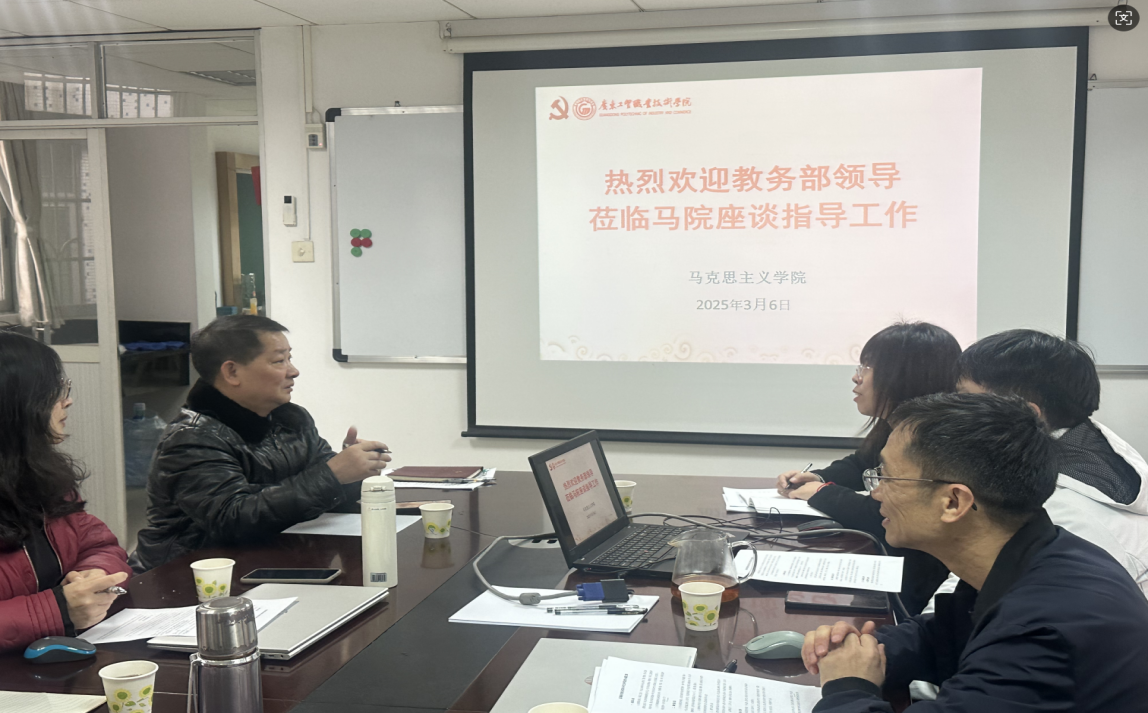 为了全面落实教育部关于开展《2024-2025 学年高校思政课课堂教学提升行动》的通知要求和《普通高校思政课教师队伍建设规划(2025-2027年)》文件精神,更好地推进我校思想政治理论课建设内涵式发展,3月6日下午,学校教务部负责人何军拥到访马克思主义学院,与马院班子成员、各教研室主任和教师代表举行座谈,共商进一步加强和改进我校思想政治理论课建设的具体思路、方案和举措。