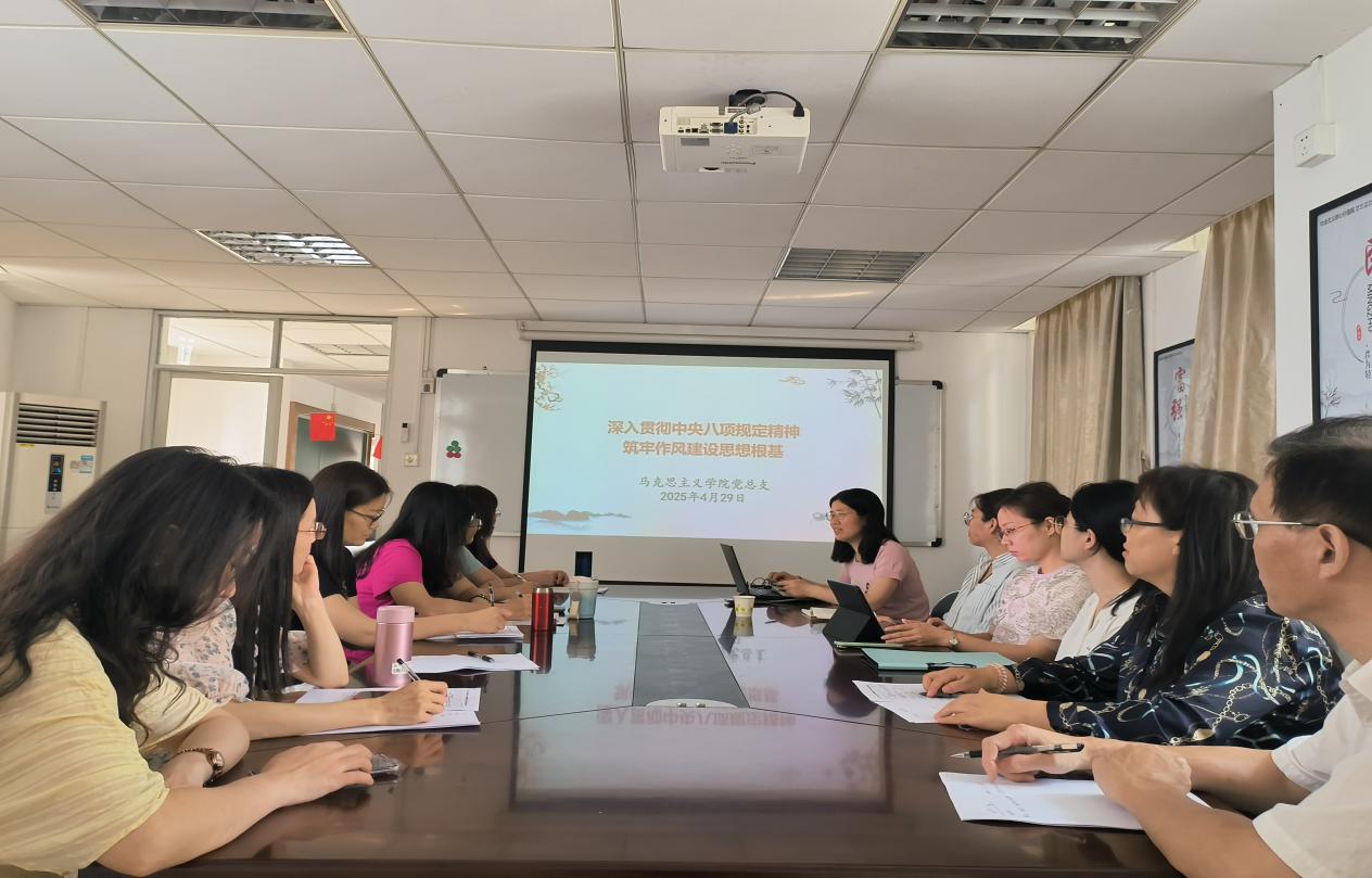 4月29日下午,马克思主义学院党总支开展“深入贯彻中央八项规定精神,筑牢作风建设思想根基”学习教育专题研讨会议,会议由党总支书记张巧平主持,党总支支委以及教师党支部支委参加。