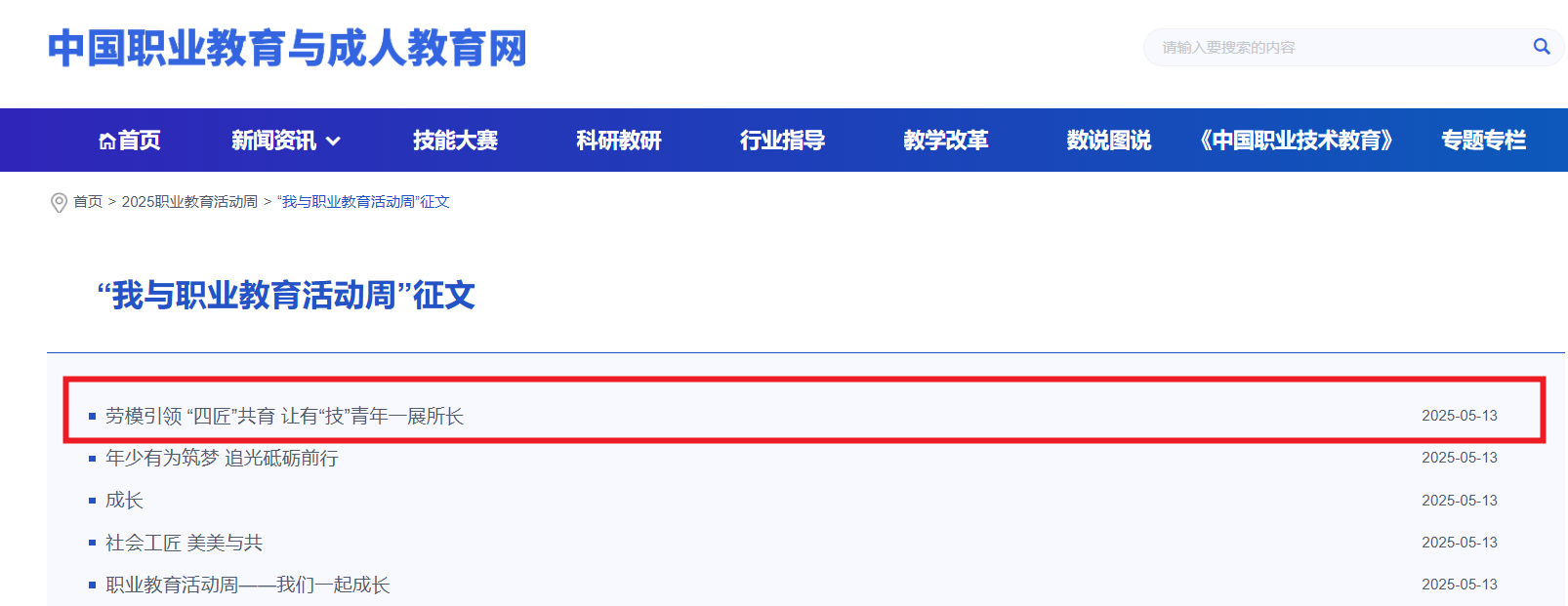 附:中国职业教育与成人教育网对该优秀征文进行宣传展示的网页链接