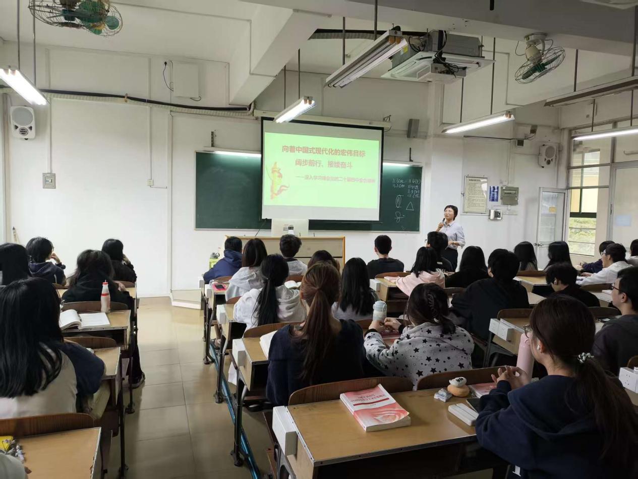武文肖老师从全会精神与中国式现代化的关系入手,引导学生领会全会的重大意义、目标原则与战略要点,鼓励学生立足专业、面向未来,在现代化建设征程中贡献青春力量。