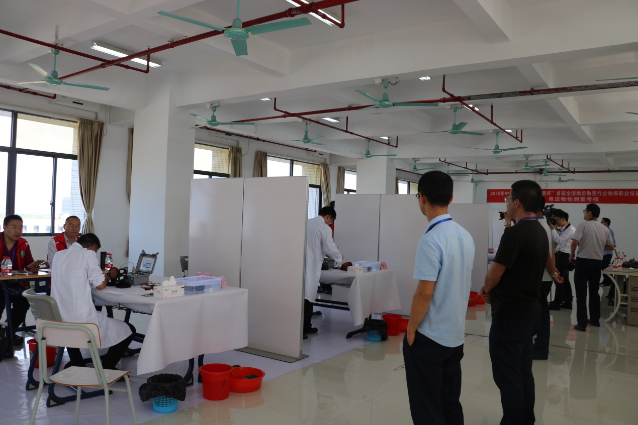 据悉,本次竞赛共分为理论知识考试、岩石定名考核、电法物性考核、磁法实操考核四个赛项,分别于我校白云校区行知楼7楼、明德楼教师发展中心、工贸大道举行。来自全国19个省市自治区以及4个中直单位的代表队近300多名地质勘查专家来我校参加竞赛。我校测绘学院速云中、李益强副院长、吴献文老师作为裁判参加了本次竞赛,并组织30余名教师、志愿者参与到竞赛当中。校办、保卫处、总务处、团委、物业为竞赛提供了保安、医疗、餐饮等多方位保障。