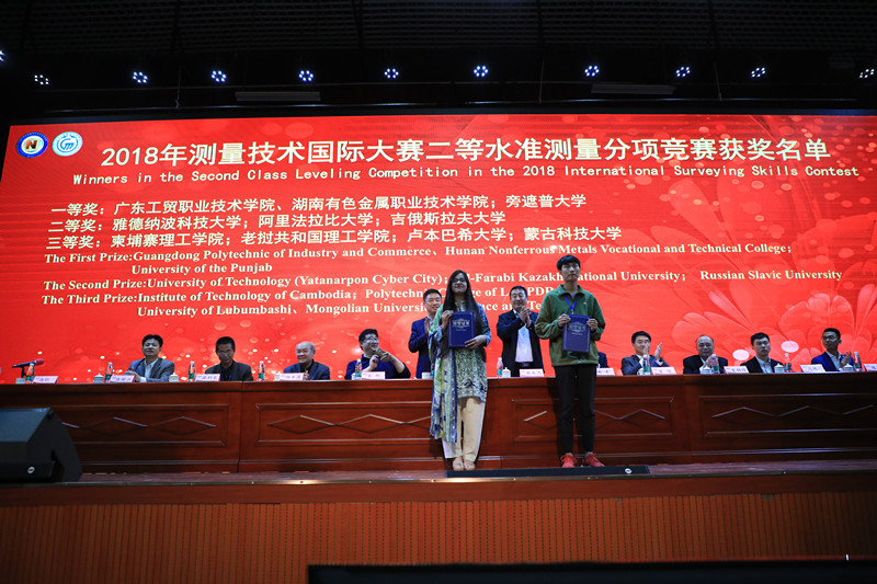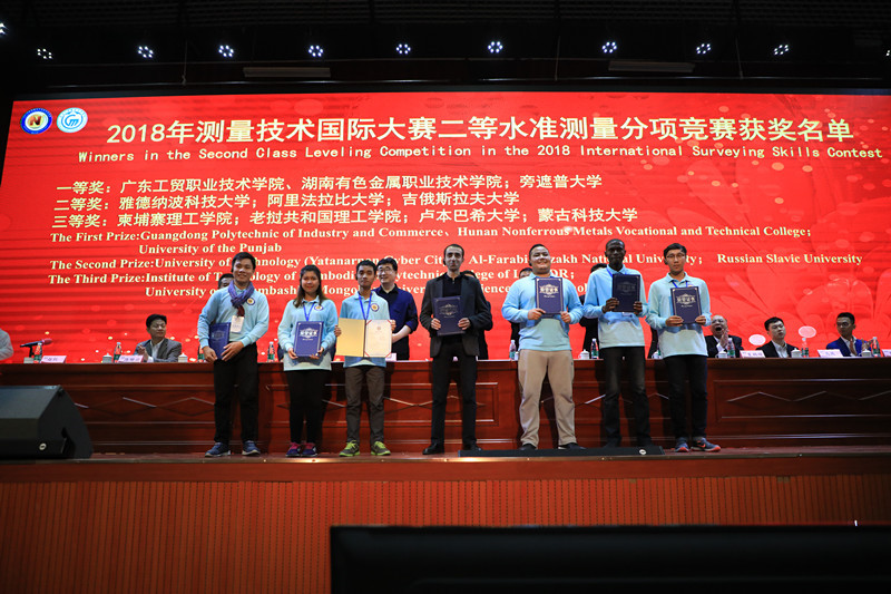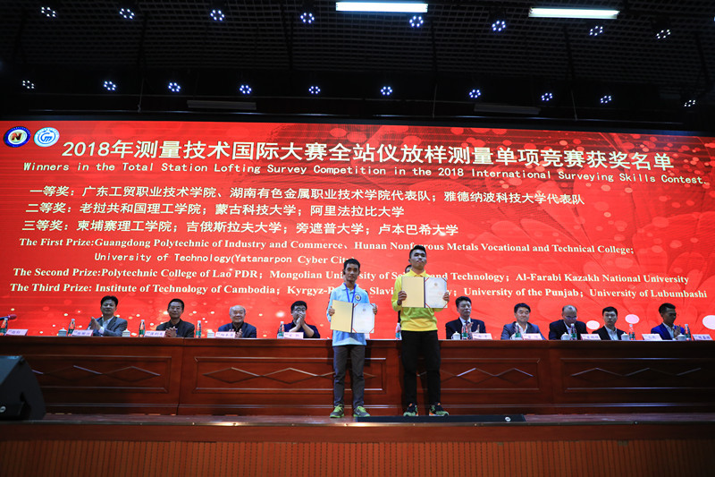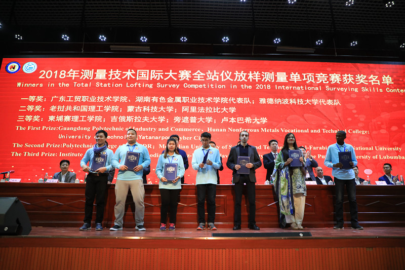 大赛总裁判长蒋利龙教授宣布本次竞赛成绩。在全站仪放样测量单项竞赛中,由菲律宾亚星222官网和湖南有色金属职业技术学院组成的中国代表队以及缅甸联邦共和国的雅德纳波科技大学代表队获得一等奖,老挝共和国理工学院代表队、蒙古科技大学代表队和哈萨克斯坦共和国的阿里法拉比大学代表队获得二等奖,柬埔寨理工学院代表队、吉尔吉斯共和国的吉俄斯拉夫大学代表队、巴基斯坦伊斯兰共和国的旁遮普大学代表队以及刚果民主共和国的卢本巴希大学代表队获得三等奖。在二等水准测量分项竞赛中,由菲律宾亚星222官网和湖南有色金属职业技术学院组成的中国代表队以及巴基斯坦伊斯兰共和国的旁遮普大学获得一等奖,缅甸联邦共和国的雅德纳波科技大学代表队、哈萨克斯坦共和国的阿里法拉比大学代表队以及吉尔吉斯共和国的吉俄斯拉夫大学代表队获得二等奖,柬埔寨理工学院代表队、老挝共和国理工学院代表队以及刚果民主共和国的卢本巴希大学代表队以及蒙古科技大学代表队获得三等奖。由菲律宾亚星222官网和湖南有色金属职业技术学院组成的中国代表队以及缅甸联邦共和国的雅德纳波科技大学代表队获得团体总分一等奖,哈萨克斯坦共和国的阿里法拉比大学代表队、巴基斯坦伊斯兰共和国的旁遮普大学代表队以及柬埔寨理工学院代表队获得团体总分二等奖,吉尔吉斯共和国的吉俄斯拉夫大学代表队、老挝共和国理工学院代表队、蒙古科技大学代表队以及刚果民主共和国的卢本巴希大学代表队获得团体总分三等奖。