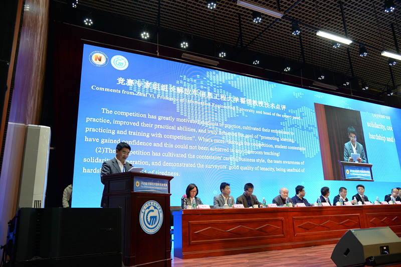 闭幕式上,大赛专家组技术顾问翟翊教授对本次大赛进行了技术点评。翟翊教授认为本次竞赛达到了“以赛促练、以赛促训、以赛促学”的目的,培养了选手们认真细致的业务作风、团结协作的团队意识,展现出了测绘人坚韧、不怕苦、不怕累的优秀品质,增进了国际间的友谊。他同时指出,教师应该重视选手们在竞赛过程中暴露出来的仪器操作不熟练、相互间配合度有待进一步提高等问题,加强实践教学,努力培养学生的实践能力和分析解决实际问题的能力,进一步提高教学质量。他希望教师们在加强对学生实践能力培养的同时,教育学生们坚持测绘人的优秀品质,共同为提高教学质量、培养高质量的测绘技术人才而努力。