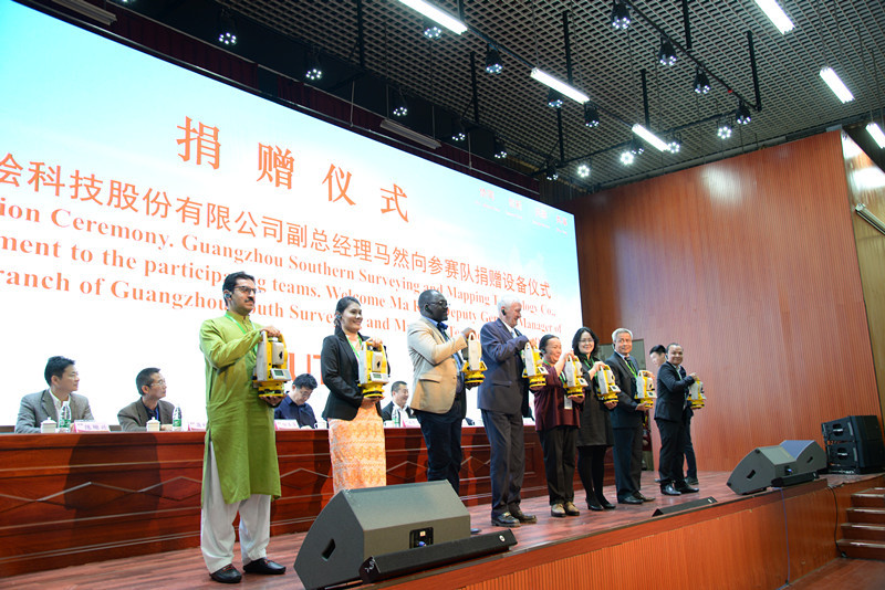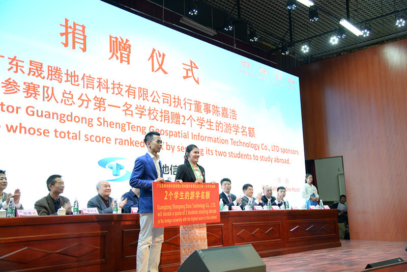 在闭幕式上,广州南方测绘科技股份有限公司向国外8个参赛队捐赠总价值超过28万的全站仪,广东晟腾地信科技有限公司执行董事向国外参赛队总分第一名学校捐赠2个学生游学名额。