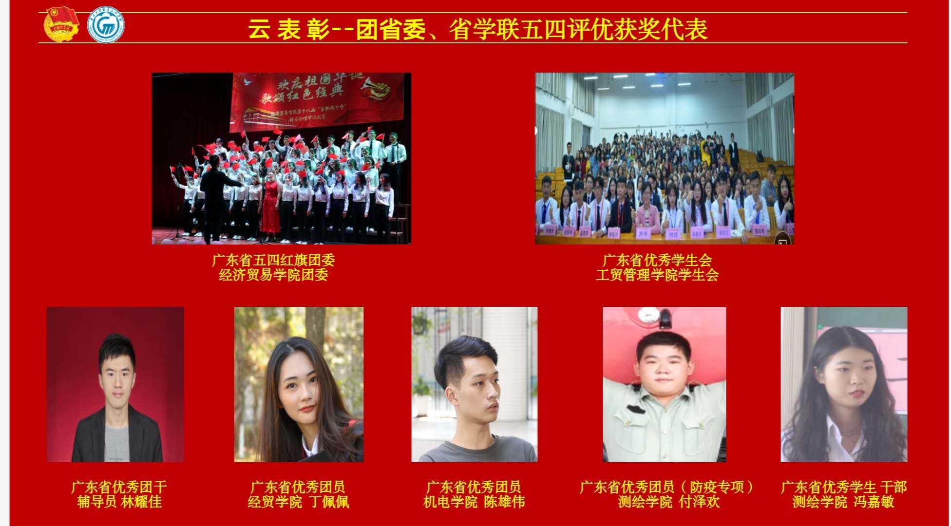 会议中,学校党委副书记、纪委书记夏韩辉同志宣读《关于表彰学校共青团系统2019-2020年度先进集体和先进个人的决定》,学校副校长陈珊兴同志宣读《关于表彰特长奖获得者的决定》,并在线上对146个获奖集体和1937名获奖师生进行了“云表彰”。