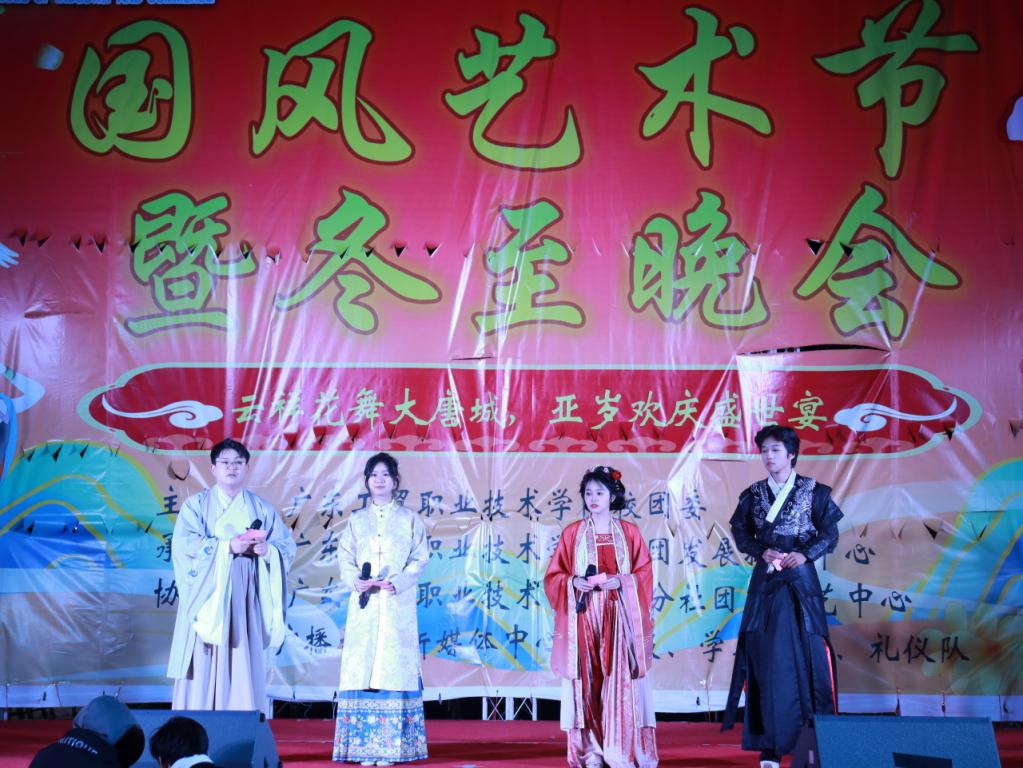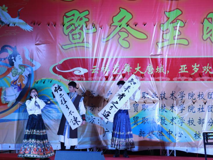 唐毓秋副校长在致开幕词时提出冬至是我国农历中的一个重要节气也是中华民族的一个传统节日本次活动通过国风游园及晚会表演展示我校社团文化建设的丰硕成果旨在凸显中华文化的博大精深增强同学们对传统文化的了解和传承并且期望以此活动为契机在培养同学们的艺术素养和审美能力的同时加深同学们对中华传统文化的了解和热爱增强文化自信