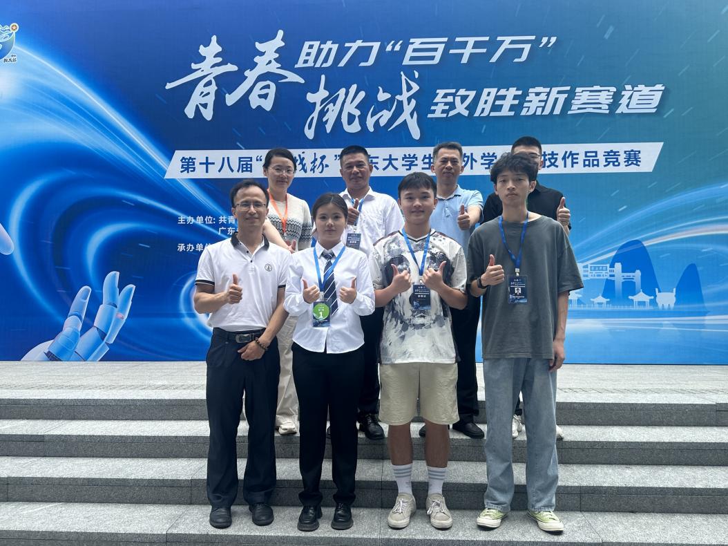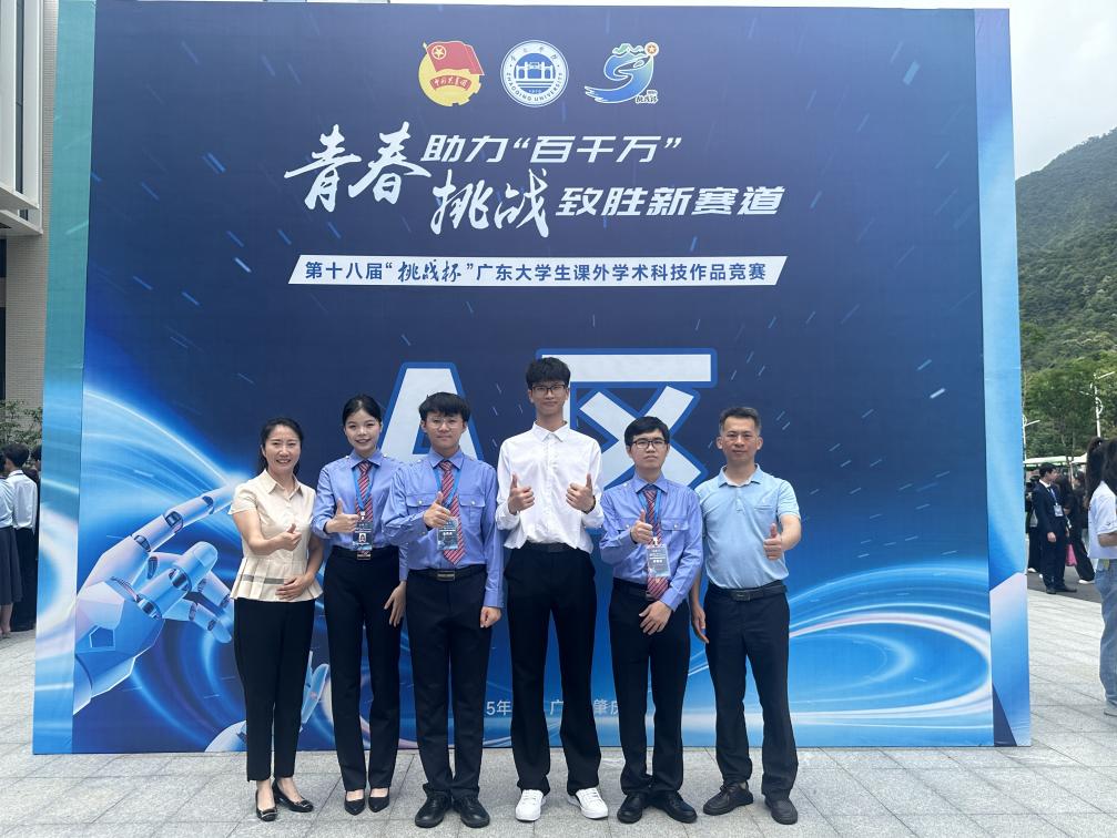 5月17日—5月19日,由团省委、省教育厅、省科学技术厅、省科学技术协会、省社会科学院和肇庆市人民政府共同主办的第十八届“挑战杯”广东大学生课外学术科技作品竞赛终审决赛于肇庆学院顺利举办。本届大赛共吸引全省161所高校、3.6万余件作品参赛,引领超20万大学生投身科创实践,参赛人数、作品数创历届新高。我校选拔推荐的16个作品,获一等奖1项、二等奖5项、三等奖9项,此外,肇庆“百千万工程”专项赛获三等奖1项。唐毓秋副校长专程到比赛现场看望师生并为其加油打气。
