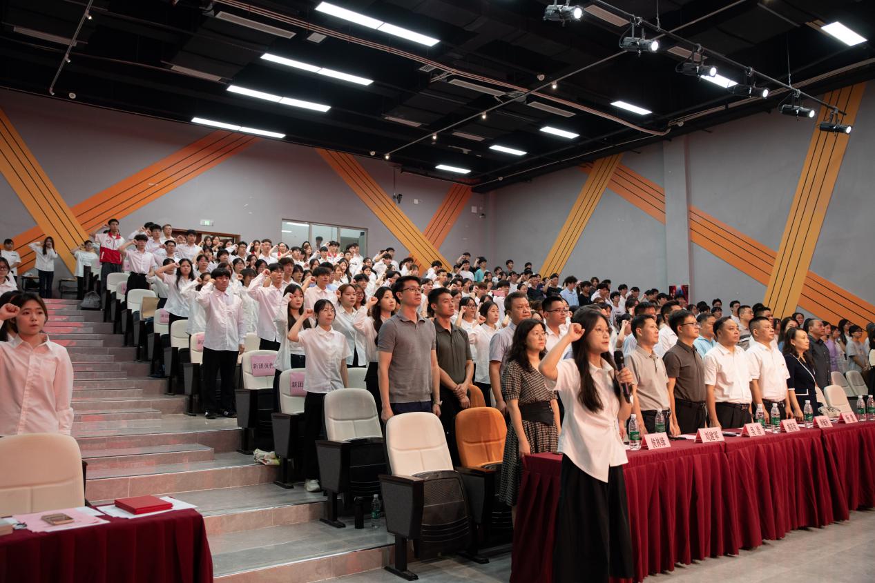 会上,学校对获奖的集体和师生进行了表彰,举办了新团员入团宣誓暨老团员重温入团誓词仪式,举行了“百千万工程”青年突击队行动暨“三下乡”社会实践活动宣誓仪式。学校党委委员、副校长唐毓秋为各突击队授旗,象征着责任与使命的传递,各突击队队员们精神抖擞,斗志昂扬,纷纷表示将以饱满的热情和坚定的决心投入到社会实践中去,为乡村振兴和“百千万工程”贡献自己的青春力量。