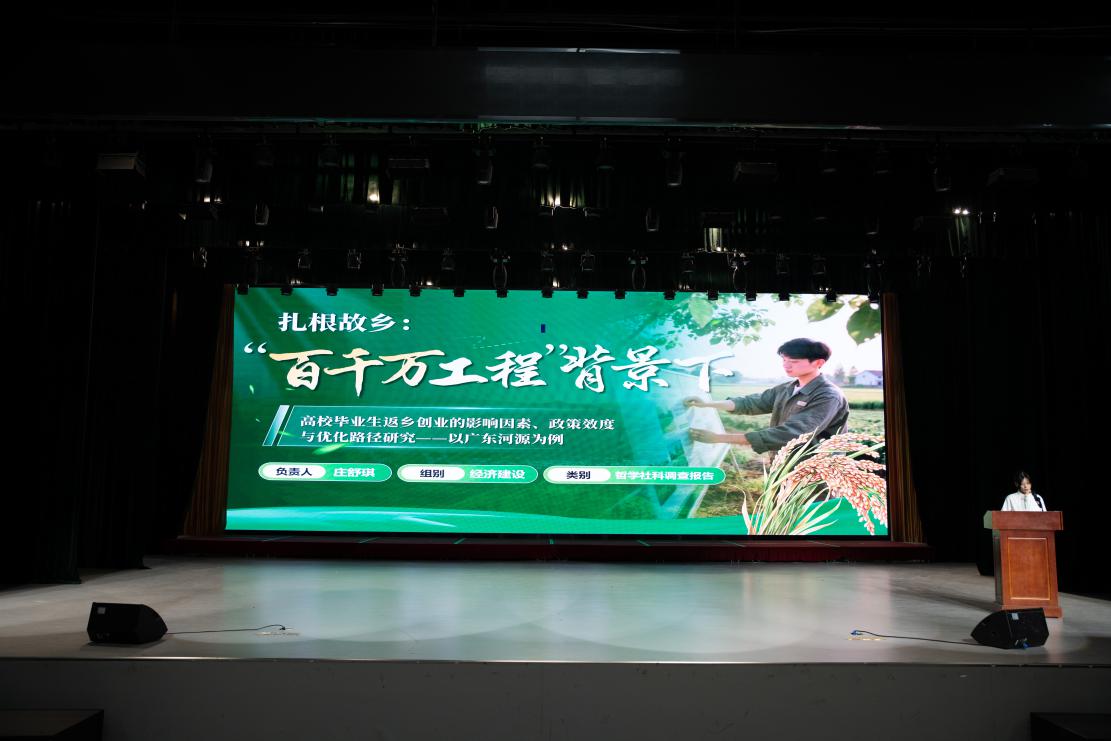 随后,唐毓秋副校长宣读了《关于表彰学校共青团系统先进集体和先进个人的决定》;测绘学院24级摄影测量与遥感技术1班李天赐同学作为获奖代表上台发言,分享了自身成长经历,并号召全体学生继承和弘扬伟大建党精神和五四精神,踊跃参与“百千万工程”突击队行动,赋能新质生产力发展。计算机学院23vr2班庄舒琪同学带来第十八届“挑战杯”广东大学生课外学术科技作品竞赛终审决赛省赛一等奖作品路演,呼吁更多同学参与到各类型的科创比赛中,在实践中锻炼自己,在创新中提升自我。