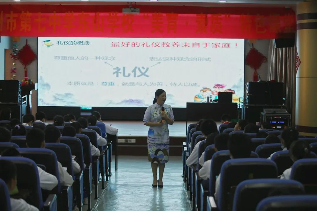 为了培养学生们具备美的情操、美的品德和美的素养,2021年10月18日上午,我校体育艺术教学部刘剑老师受邀来到广州第七中学东山学校开展美育素质特色课堂,为初一年级学生们传授了一场精彩的青少年礼仪课,受到了一致好评。刘剑老师系我部艺术教研室主任,有着20年高校教育管理及教学经验,获得美国认证协会ACI国际注册高级礼仪培训师。她通过身体力行,从知礼、懂礼、行礼几个方面对学生进行了全面的引导。