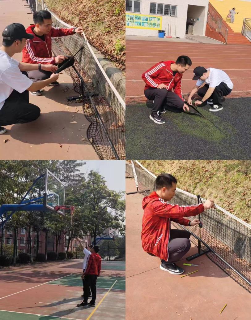 2023年2月22日星期一,体艺部余铨业主任、刘羽老师带队分别对开学首日学生体育课上课情况、场地设施安全进行专项检查。