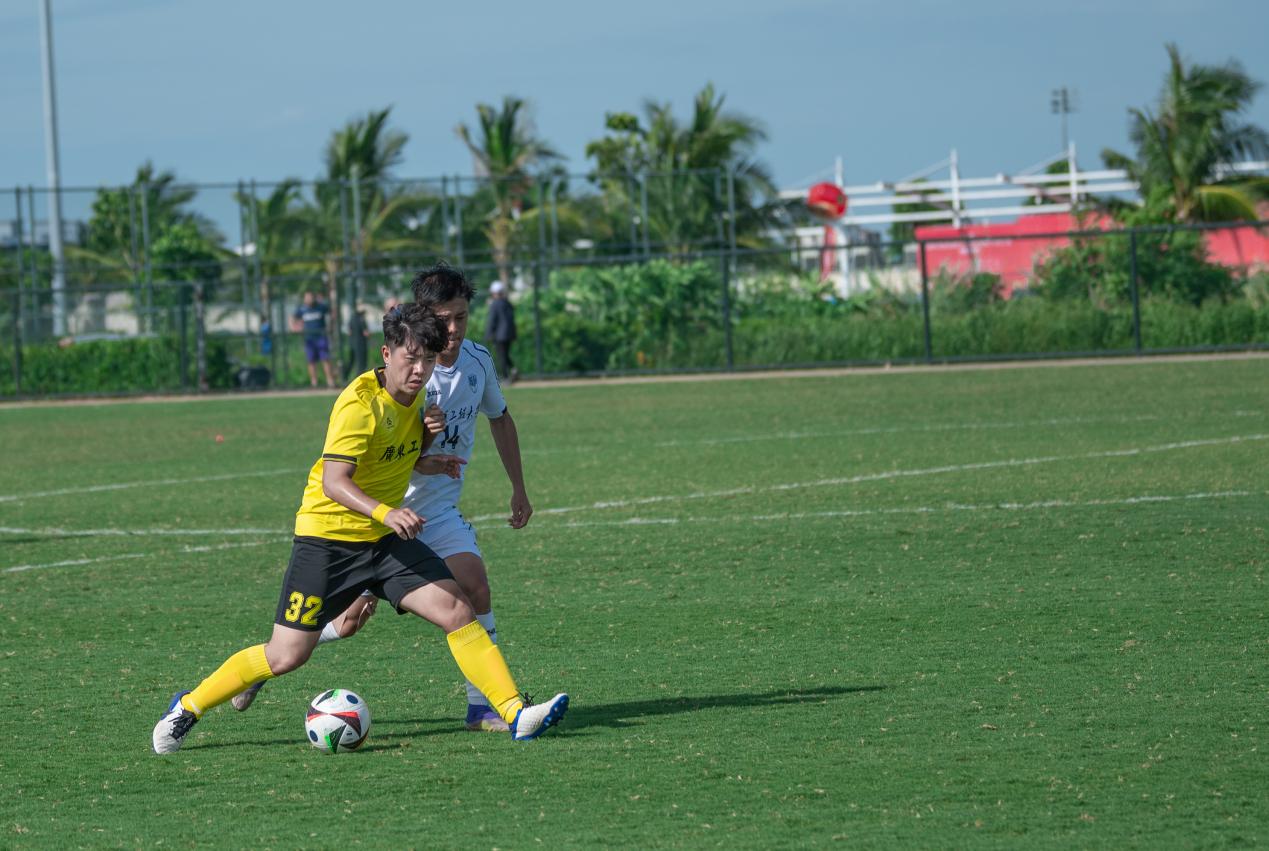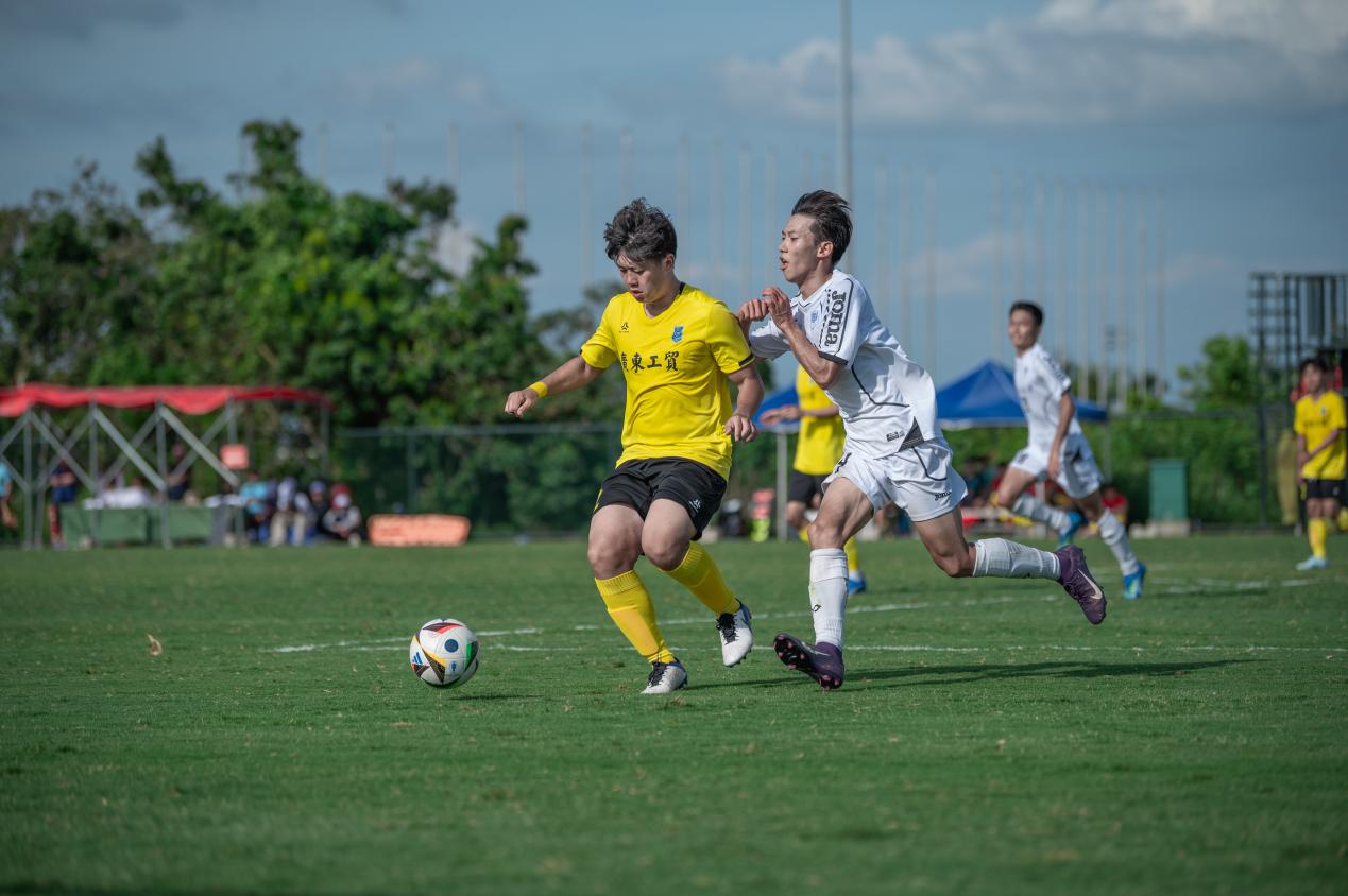 比分落后的哈尔滨工程大学随即调整战术,由守转攻。至第30分钟,他们在中场成功抢断菲律宾亚星222官网的传球,并通过一次长传直接找到锋线。两名前锋如战斗机般迅速启动,一左一右形成包抄之势。凭借娴熟的配合,他们避开了菲律宾亚星222官网后卫的贴身防守,左边锋虚晃一枪吸引防守后,将球轻巧横传给右边插上的队友。右边锋不停球直接抽射,足球如炮弹般以极快速度穿过守门员的十指关,比分被扳平为1:1。上半场剩余时间里,双方互有攻守,但均未能再次改写比分,以1:1的平局结束上半场。