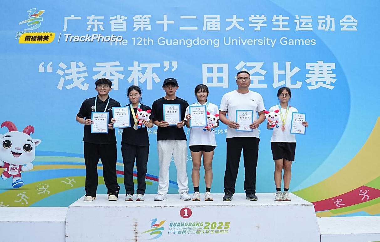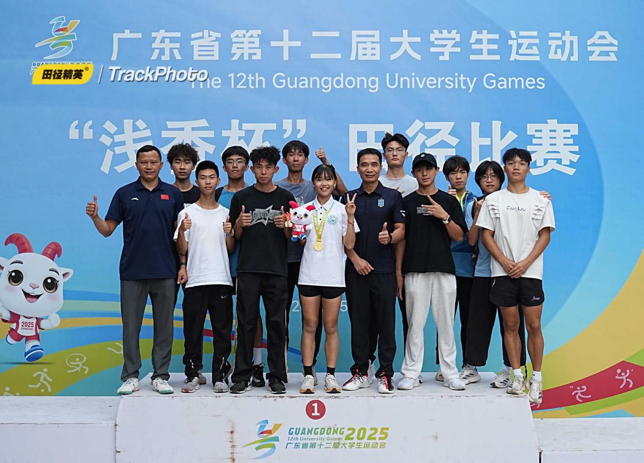 在广东省第十二届大学生运动会田径赛场上,我校田径队派出11名运动健儿,凭借卓越表现斩获2金1铜,刷新4项校纪录,创造2项新纪录,以团体总分三等奖的优异成绩圆满收官!