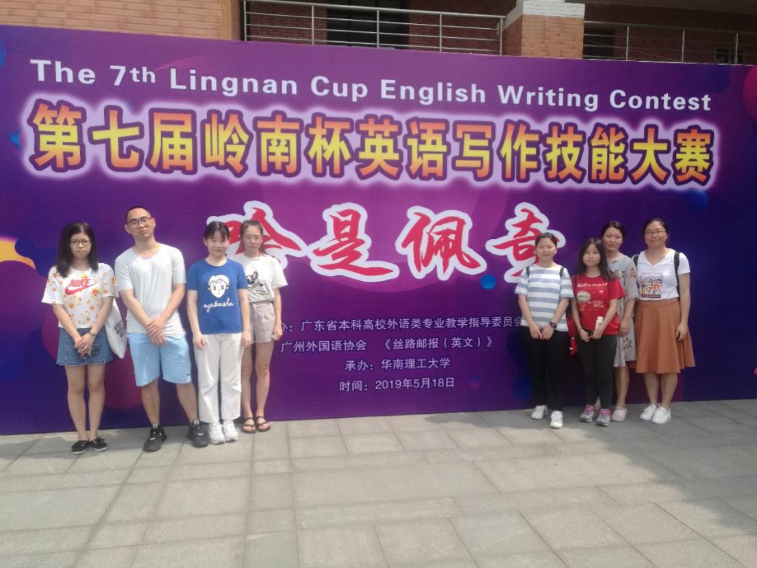 5月18日,第七届岭南杯“啥是佩奇”英语写作技能大赛复赛和决赛在华南理工大学五山校区举行。本次大赛由广州外国语协会和广州日报报业集团联合发起,广东省本科高校外语类专业教学指导委员会主办,来自广东全省100多所本科和专科院校共300余名选手参加复赛。我校共选派9名学生参赛,其中,宁澳获公英专科组一等奖,曹颖诗、麦月霞获二等奖,刘锦澄、周姿腾、郭海悦获三等奖;洪佳秀获专英专科组三等奖,傅可宜、李婉文获优秀奖。