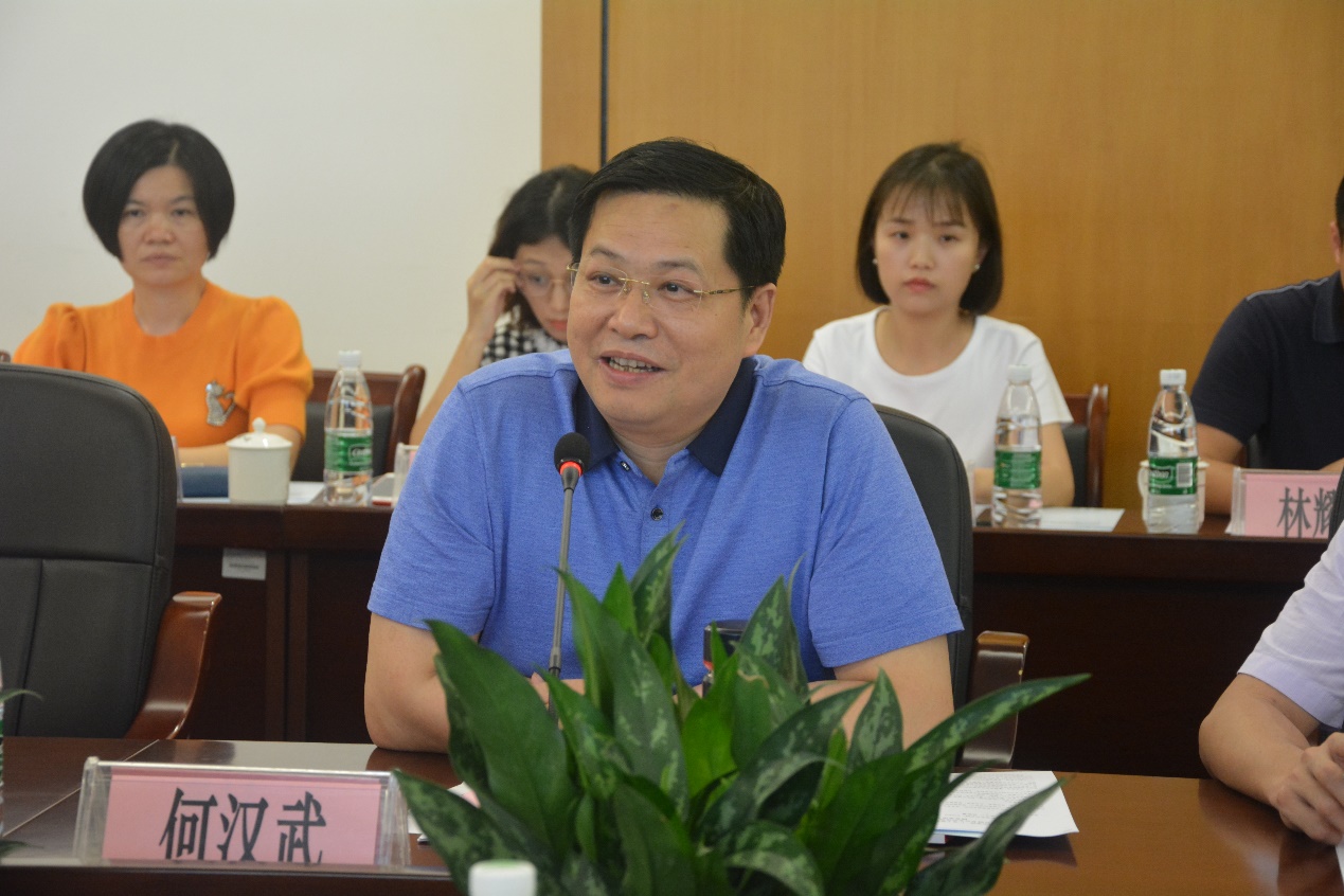 何汉武对韶关学院相关领导的到来表示热烈的欢迎及感谢,同时介绍了我校的相关概况以及外语学院的相关教研成果。他认为。在“一带一路”的背景下,现代学徒模式在不断提升,教学标准和专业标准也应得到提高并推广,希望能以本次合作为契机,能够有机会向韶关学院学习,共同探讨社科研究,把握机会,共同承担重任,精诚合作。