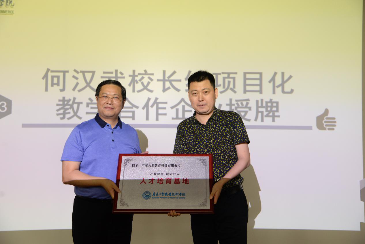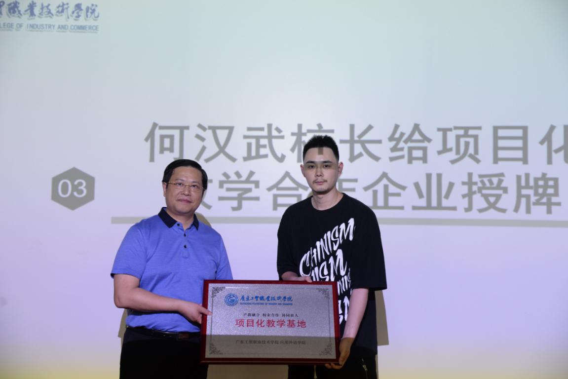 紧接着,校长何汉武向深圳头狼电子商务有限公司和25家企业负责人进行了授牌,分别授予朱加宝总经理和25位企业代表“商务英语专业人才培育基地”和“产教融合校企合作协同育人项目化教学基地”牌匾,并与与会人员合影留念。