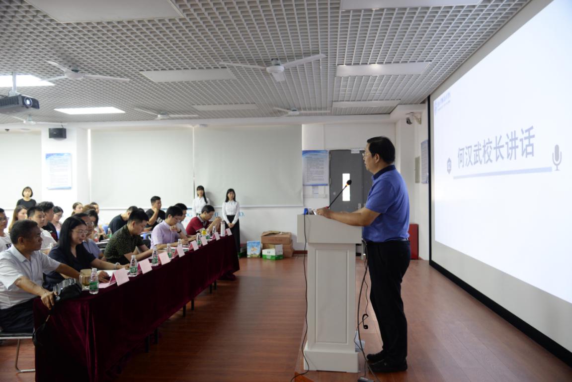 会中,校长何汉武做了精彩致辞,提出要充分发挥校企双方优势,全面推动应用外语学院开展产教融合、校企合作工作,让应用外语学院培养出更多技能型、复合型人才。他要求,在项目化教学建设过程中,学院需注重方法方式创新,打破思维定式,充分利用企业的人才优势、资源优势和行业优势,依据市场发展需求和企业岗位需要,做好项目化教学设计;要共建实践教学基地,校企共享教学资源,鼓励更多有社会责任感、有教育情怀的企业深度参与学校的人才培养,为学生打通便捷的就业通道。目前,正值我校聚焦内涵建设、提升办学能力和水平的关键时期,希望同学们都能积极参与到项目化教学中,在实践期间始终保持积极主动,严谨勤勉的工作态度,虚心接受企业主管与师傅的指导和要求,自觉完成实习任务。