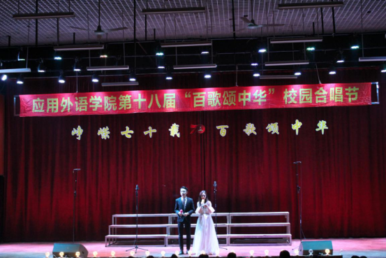 “我和我的祖国,一刻也不能分割,无论我走到哪里,都流出一首赞歌……”熟悉的旋律奏响时代的华章。近日,应用外语学院“辉煌七十载,筑梦新时代” 第十八届“百歌颂中华”校园合唱比赛在白云校区演艺厅举行。应用外语学院党总支副书记罗春科、副院长杨国民、学工办主任林耀佳及相关班主任、辅导员参加本次晚会。